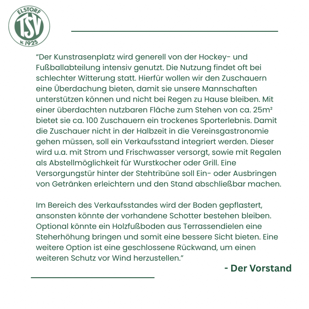 Unsere Heimat, das wunderschöne Sportgelände an der Schützenstraße, soll ein Ort der Bewegung und der Begegnung sein und bleiben. Denn: